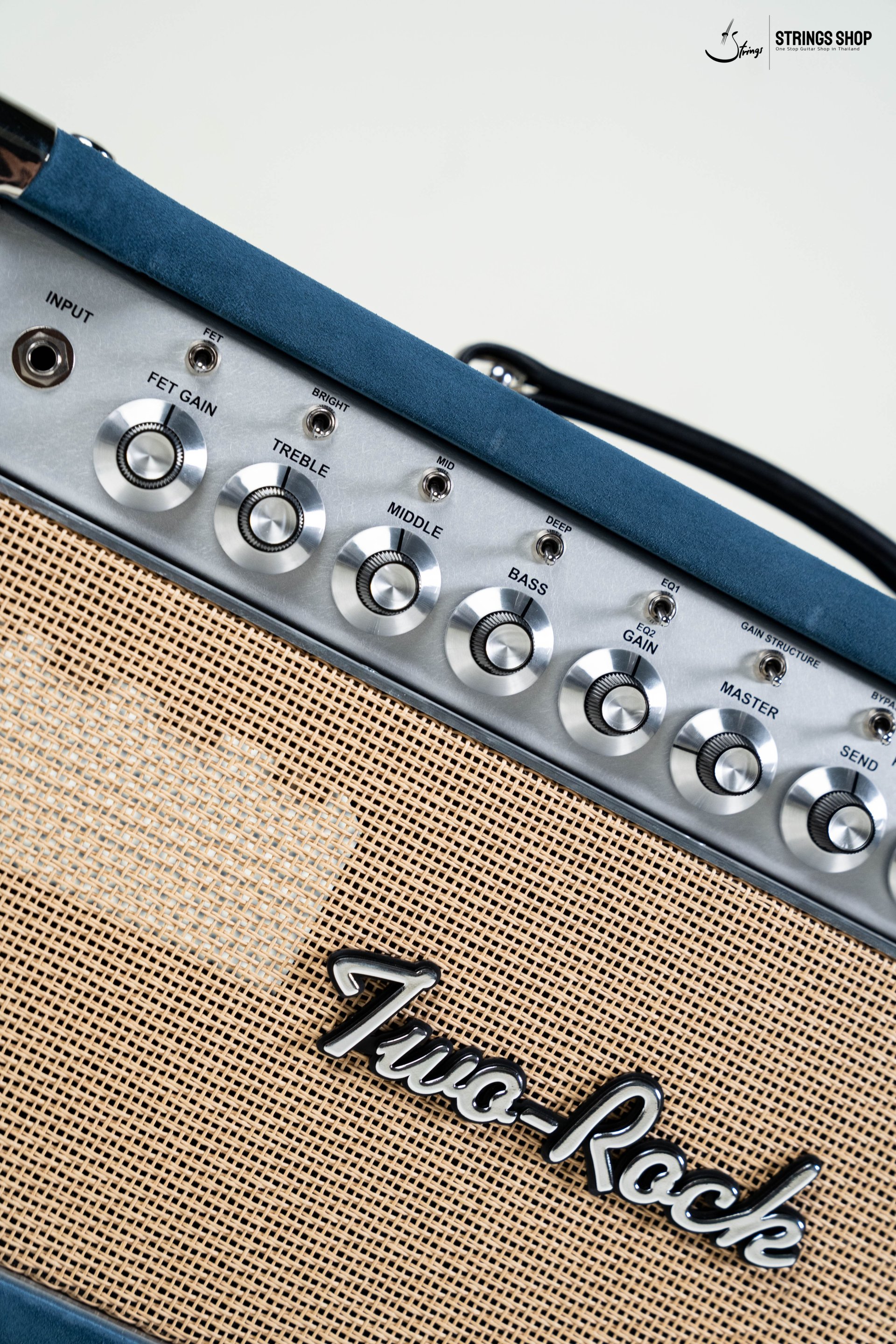 FET Circuit with Gain control, Tone Stack Bypass, Tube driven analog Spring Reverb with separate Send and Return controls. 3-position Gain Structure Switch. Contour control, High/Low Power Switch, foot switchable FET, Bypass, and Reverb Defeat