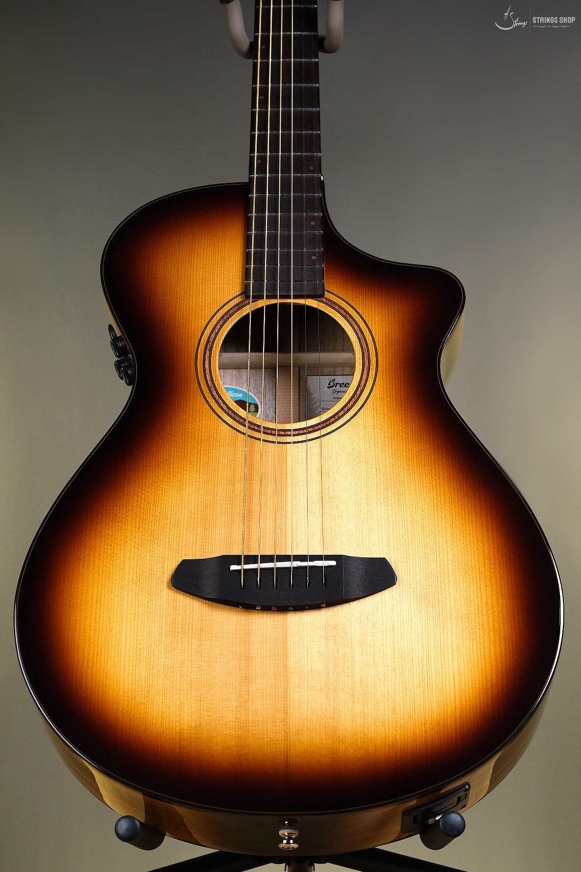 A connoisseur’s guitar, at an astonishingly affordable price. While the Artista series sits at the top of the Organic Pro line, it remains within reach, especially the Concertina. A short scale European maple neck joins the all-solid Oregon myrtlewood body and European spruce top at the twelfth fret, offering a combination of easy playability, expressive tone, and visual beauty. Small body guitars—long treasured by serious players—are becoming increasingly popular as more and more people discover the size and depth of sound that can come from a comfortable instrument. The Artista Pro Concertina Burnt Amber CE—with its arresting burnt amber burst finish on both the soundboard and up the back of the neck—is an investment in joy. Experience the Breedlove difference at its finest!