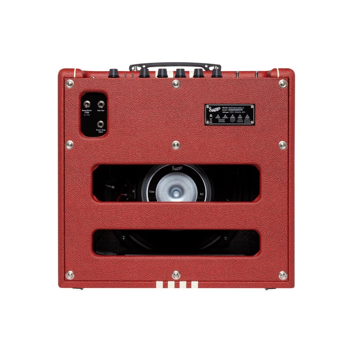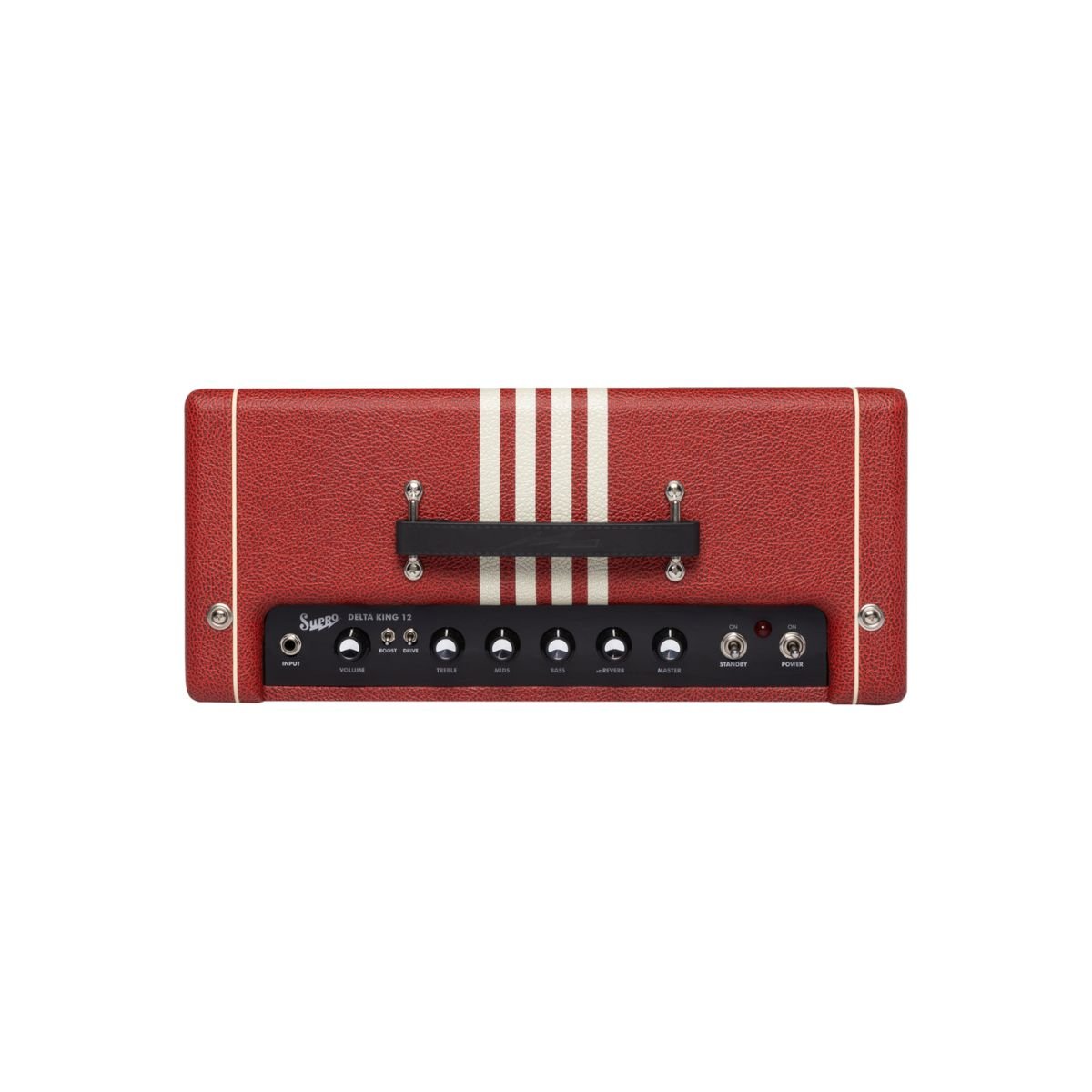 The Delta King 12 combo captures the vintage Supro amp tone that helped sculpt the sound of early electric Rock & Roll and the British Invasion of the 1960s. Its single-ended Class A tube power amp provides the same raw tonal characteristics and remarkable touch sensitivity features of its mid-century counterparts, all while delivering a full 15 watts of 6L6 tube power through our custom 12-inch DK12 speaker. Features include front-end gain via a 12AX7 tube preamp, a FET-driven boost function, Pigtronix FAT high-gain mode, 3-band EQ, master volume, and custom-made genuine analog spring reverb.