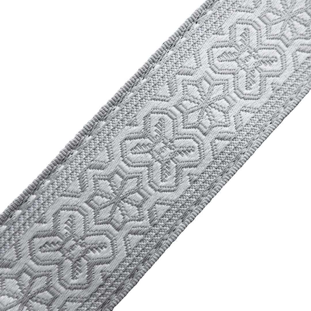 High quality jacquard webbing on soft nylon webbing. Synthetic end pieces, extremely tear-proof and resilient.